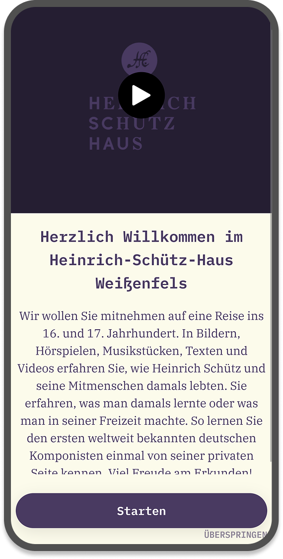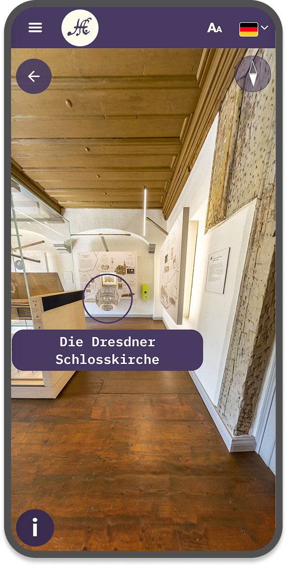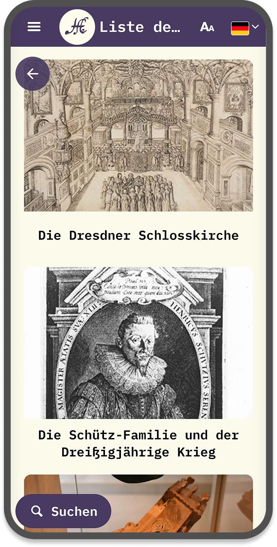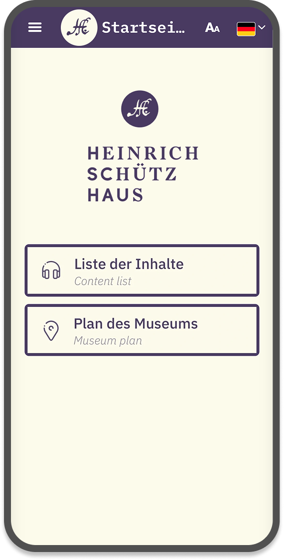 Pour la Heinrich-Schütz-Haus, musée au sujet du compositeur éponyme, un guide de visite multilingue a été réalisé avec Yunow. Le visiteur peut choisir un affichage des contenus en mode liste ou carte pour l’accompagner tout au long de sa visite. Il accède via des POI à des fichiers audios, des images et des panorama du musée à 360°. Nous avons fait réaliser les scripts et audio par Les Décodeurs Associés.